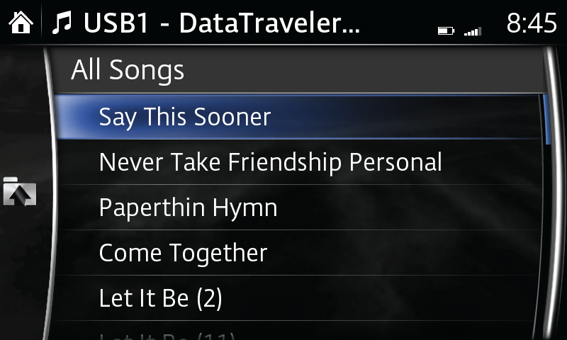 Listen to an iPod or other compatible portable audio player using the USB mode. Playable data includes: MP3/WMA/AAC/OGG files. Compatibility varies according to model or operating system (OS) version of device. Click here to see if your device is compatible. If incompatible device is connected, error message is displayed.