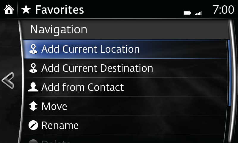 Create a list of frequently used destinations or places of interest (POI) for quick, easy access.