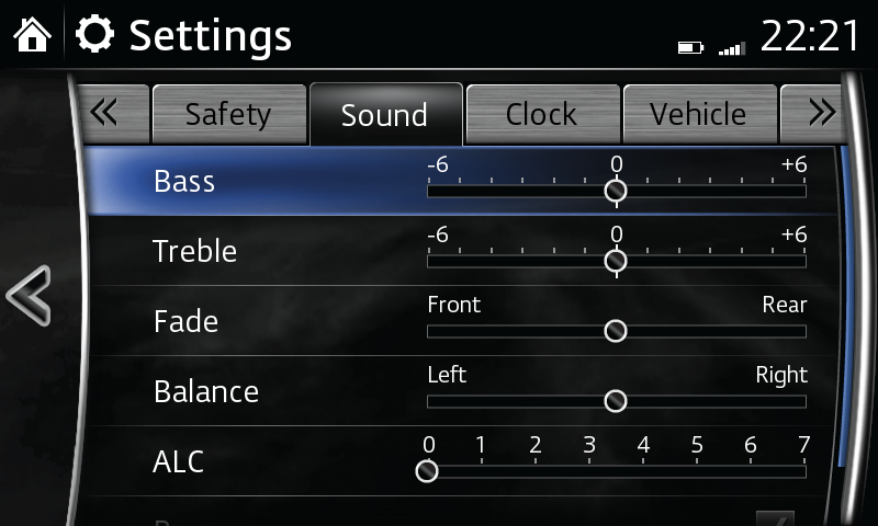- Select Fade, slide to adjust front/back speaker volume balance.